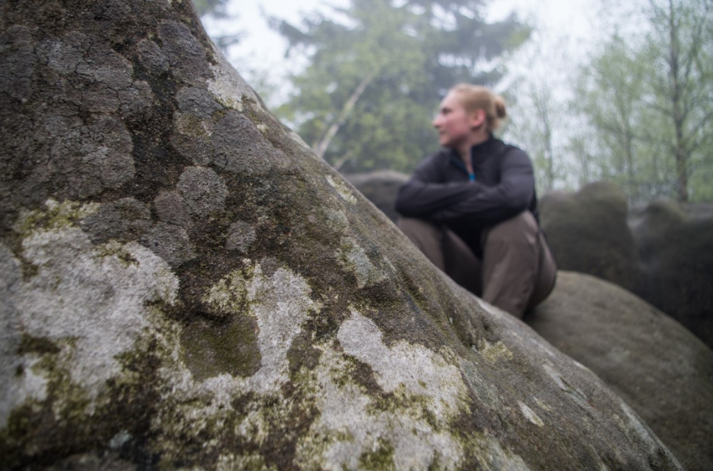 W środku kociego królestwa wszędzie skały przypominające różne kształty, tonące w chmurach i mgle. Po chwili docieramy do naszego szczytu. Wędrujemy sobie między skałami o nazwach wywodzących się z podobieństwa ich kształtu do różnych rzeczy lub zwierząt. Mijamy wielbłąda, małpoluda na tle, którego mój mąż nie omieszkał mi zrobić zdjęcia 🙂 .