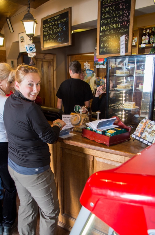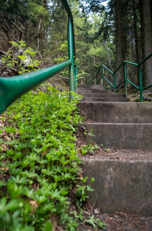 Na końcu wędrówki schody w dół. Co ciekawe im niżej schodziliśmy tym było coraz zimniej i pogoda była coraz gorsza, a na samym dole padał deszcz. Wniosek z tego, że dzisiejszy dzień lepiej spędzić wyżej ponad chmurami 🙂 . Więc jedziemy na kolejny szczyt Orlicę zaraz po zakupie sporej ilości oscypków 🙂 .