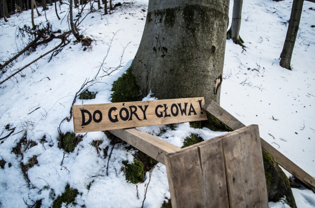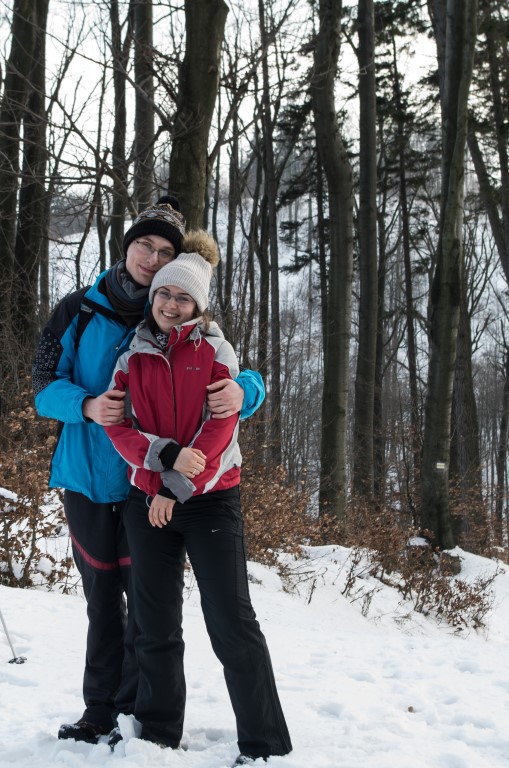 Na skalnik podchodzimy od strony miejscowości Czarnów. Samochód zostawiamy za zgodą właścicieli w samym Czarnowie jak się potem okazuje pod świątynią Hare Kryszna. Do prywatnego schroniska „Czartak” postanawiamy przejść się na nogach ponieważ droga jest bardzo oblodzona i wiedzie raz w górę raz w dół i obawiamy się, że nasz samochód może nie podołać. Szlak niebieski prowadzi nas na szczyt przez ośnieżone pola. Zapadamy się po kolana w śniegu i niektórzy nas (a była nas dwójka :)) twierdzą, że to bez sensu, że w takim śniegu nie uda nam się dotrzeć na szczyt. Po dotarciu do Czartaka chwila wytchnienia od śniegu w postaci kawałka drogi z ubitym śniegiem. Dalej jednak znowu trzeba wejść w las na nieutorowany szlak. Brodzimy w śniegu pod górę pilnując aby nie zgubić znaków na oblepionych śniegiem drzewach. Słońce świeci drzewa wyglądają pięknie całe pokryte są lodem utworzonym przez rozmarzający w ciągu dnia i zamarzający nocą śnieg. Niestety baterie w aparacie odmówiły nam posłuszeństwa i ratujemy się aparatem w telefonie.