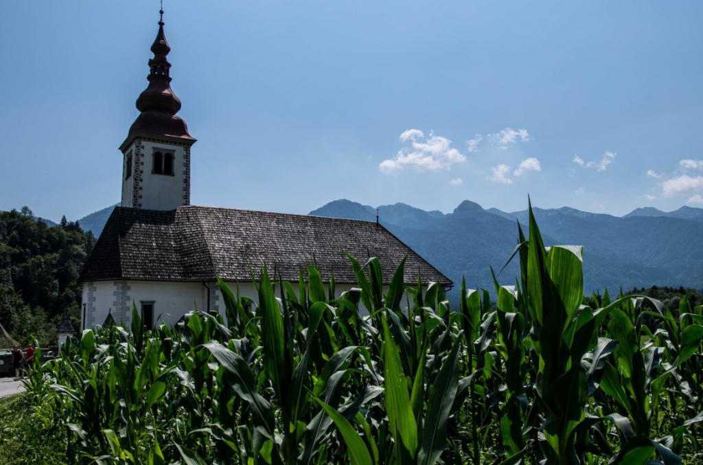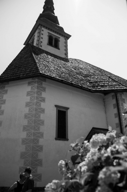 W drodze powrotnej zatrzymujemy się jeszcze na chwilę w przydrożnym kościółku tuż za Bohinj, kościół zachwyca nas swoim położeniem z górami w tle.