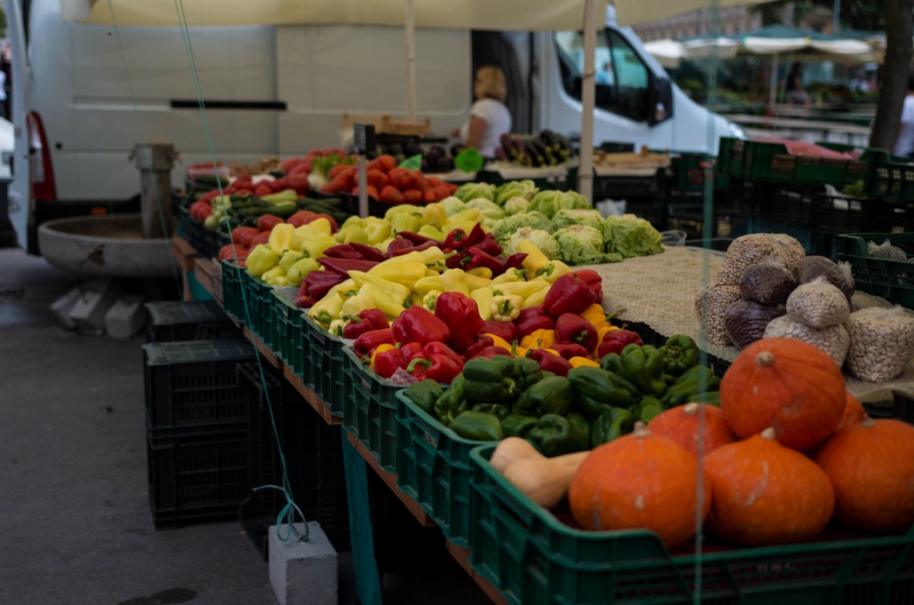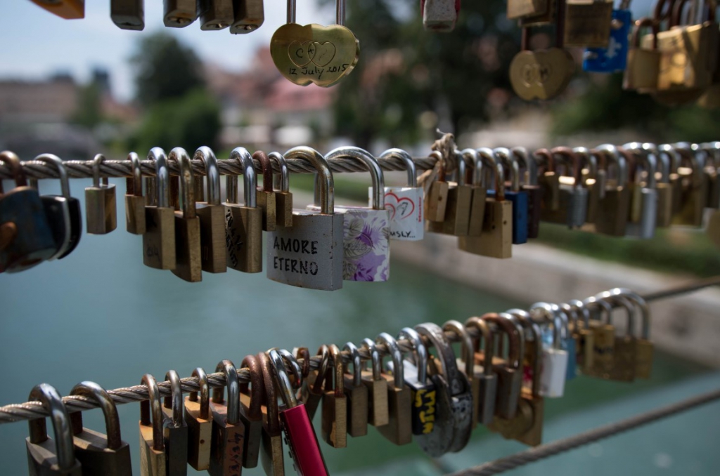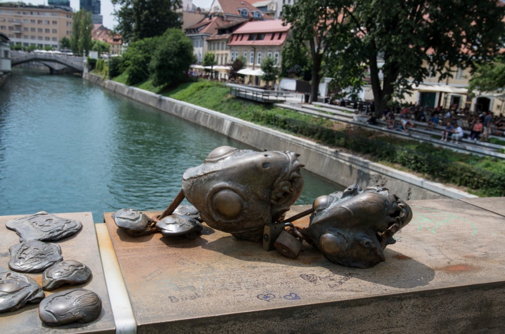 Dalej podążamy wzdłuż rzeki podziwiając mosty Lublany. Na dłużej zatrzymujemy się na targu Vodnikov trg, którego istnienie zawdzięczamy trzęsieniu ziemi z 1895 roku, które zniszczyły stojące tu budynki szkoły i biblioteki. Dzięki temu w dni powszednie możemy dzisiaj tu odwiedzać targ. Zakupujemy tu pyszne warzywka i owoce. Tuż przy targu znajduje się most, który jest chyba odpowiednikiem mostu zakochanych, na którym wisi setka kłódek zawieszonych przez zakochane pary.