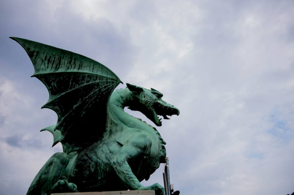 Idąc wzdłuż nabrzeża dalej docieramy do mostu Smoka, którego wejścia z każdej strony strzegą smoki symbole Lublany. Tutaj kończymy nasz spacer.